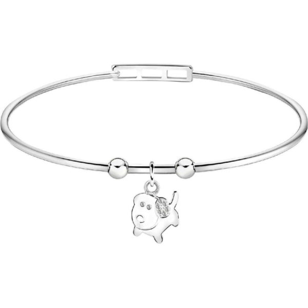 Bracciale donna collezione Enjoy. Colore argento in acciaio e cristalli. Lunghezza 63,2X53,2 Mm. Ciondolo a forma di cagnolino.