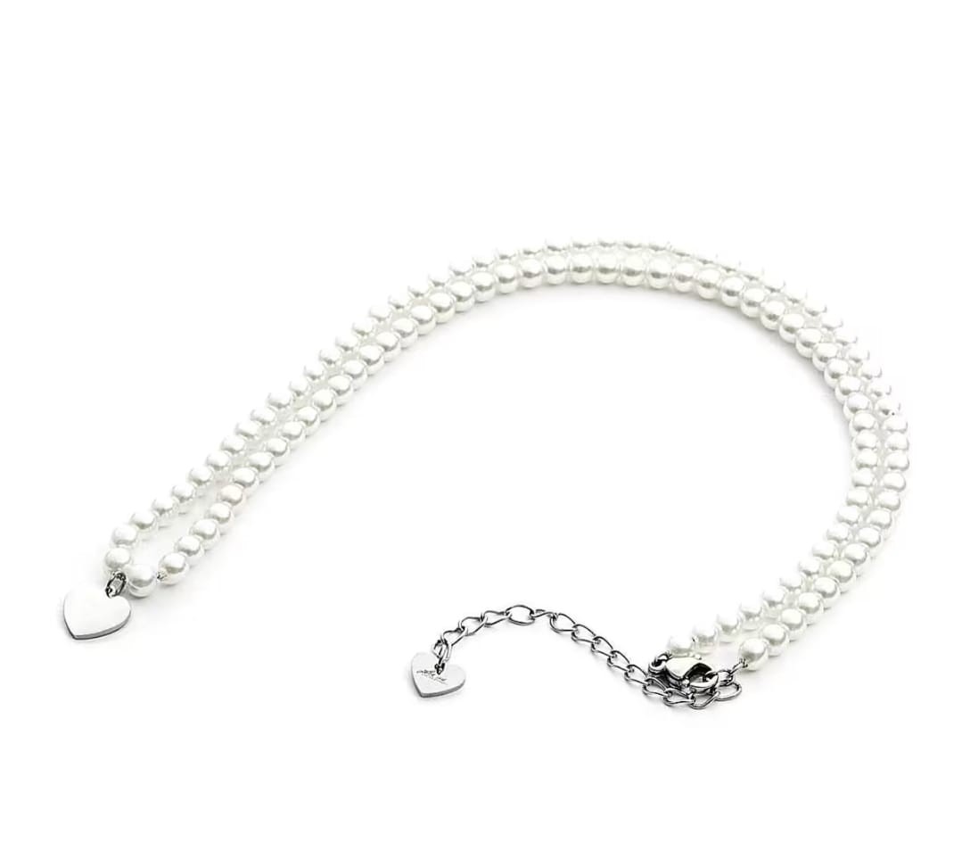 Collana perle con pendente a forma di cuore, donna.