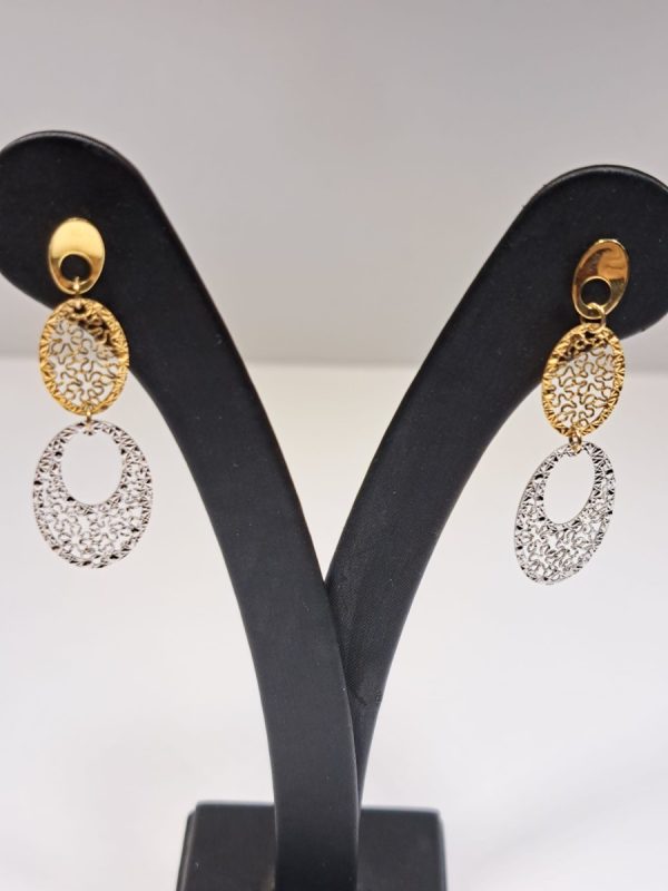 Orecchini in oro bianco e giallo 18kt con pendente a forma ovale