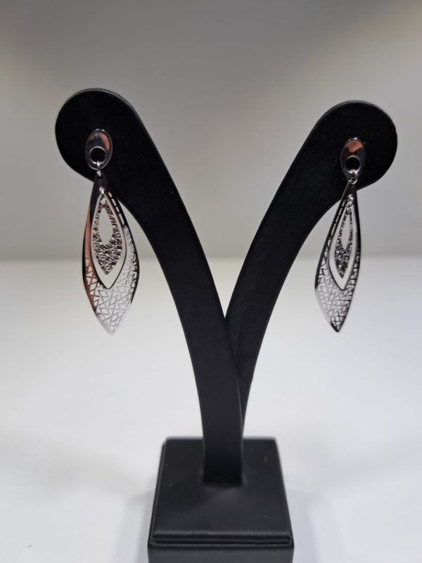Orecchini pendente goccia in oro bianco 18kt.