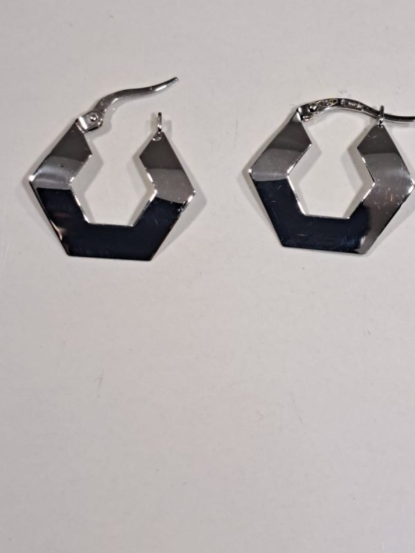 Orecchini in oro bianco 18kt a forma di pentagono.