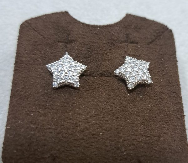 Orecchini stella in oro bianco 18kt con zirconi, donna.